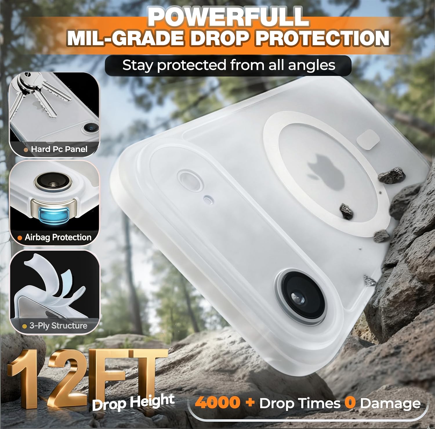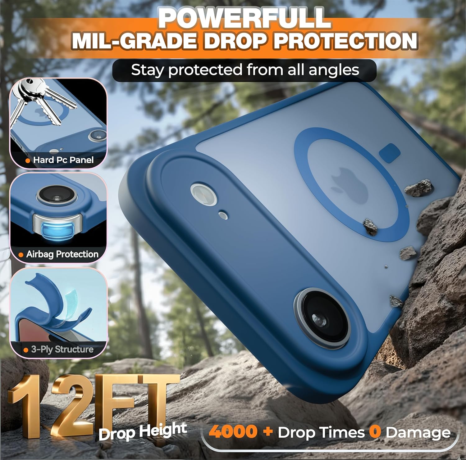 - Drop Protection: Military-grade, up to 13 ft