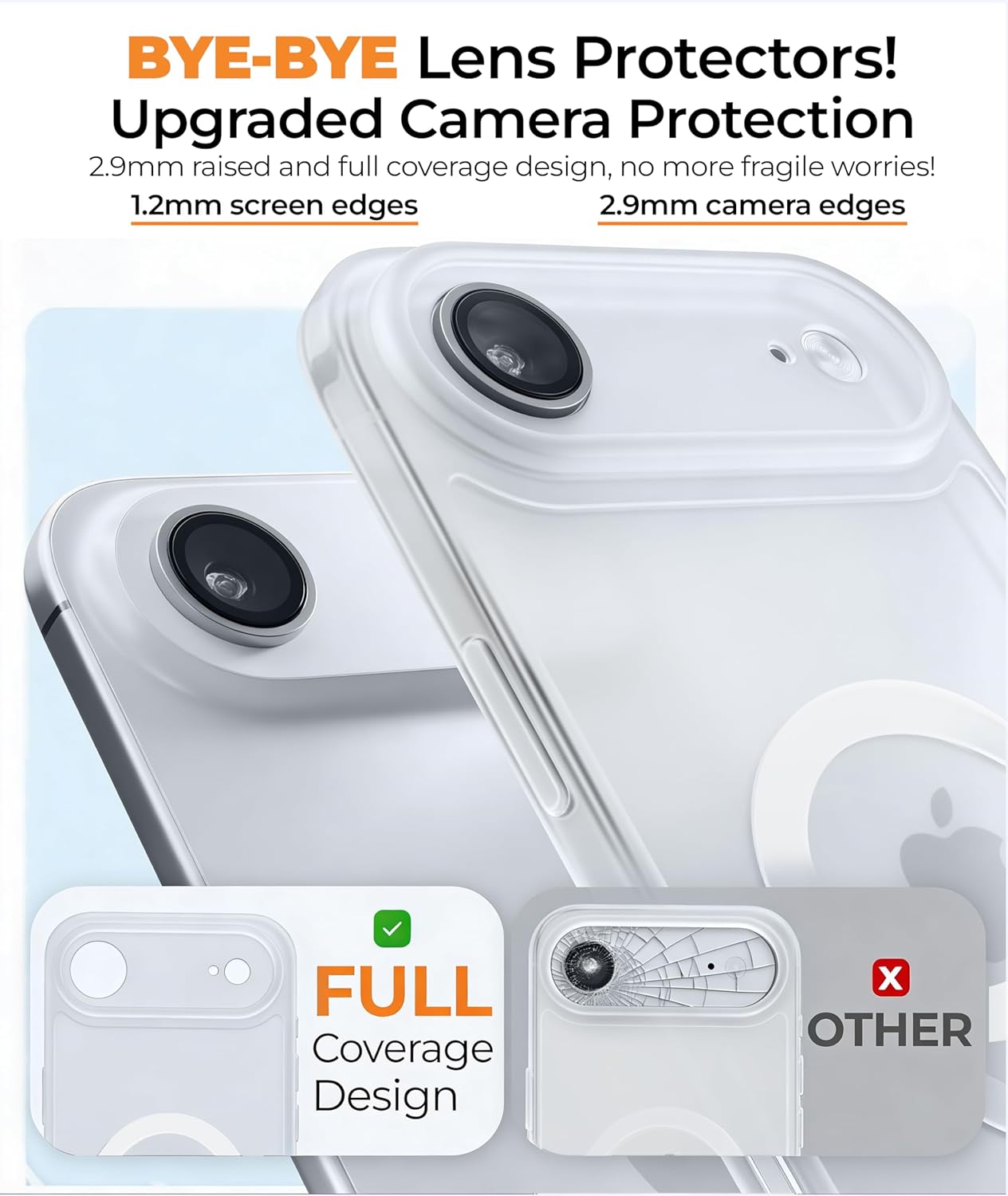 This case features super magnetic attraction with powerful built-in magnets for easy place-and-go wireless charging and full MagSafe compatibility. Designed exclusively for iPhone Air, it offers precise cutouts for all ports, buttons, sensors, and cameras, along with soft, responsive buttons for effortless use. The matte translucent back combines a flexible TPU frame with a hard PC back and matte coating, delivering a premium feel, excellent grip, and strong resistance to fingerprints, smudges, and scratches. For added peace of mind, the case is tested to withstand military-grade drops of up to 13 feet.